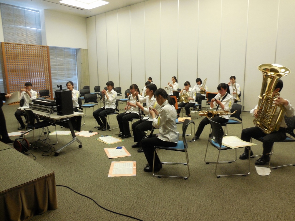 松陵工業、北陵の校歌に加え、「さくらのうた」の演奏と「青いベンチ」の合唱を披露させていただきました。
