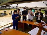 続いてスコップやテントなど準備。コロナ対策で例年よりも準備することが多いですが、テキパキと行動していました。参加者の検温もしっかりと。