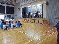 2,3年生は第一体育館で、1年生はCSホールでリモートをつないで行いました。