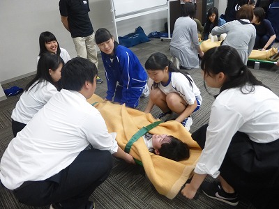 金沢北陵高校JRC部員は20名全員が参加し、各グループに分かれ、演習や講義を受けました。