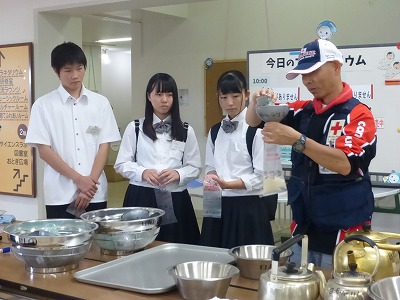 災害時炊き出しグループは、赤十字職員の方にアルファ米の炊き方や、非常時に役に立つ紐の結び方を教えていただきました。