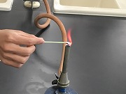 それぞれの溶液を綿棒につけ、炎の中にかざし考察します。