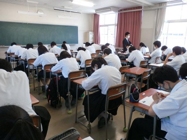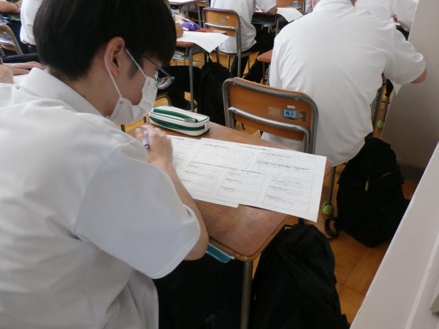 進路ワークブックを使い、具体的に進路(進学・就職)のポイントを絞りながら考察していくということを行いました。一人ひとり自分の進路に真剣向き合い、取り組んでいる姿が見られました。