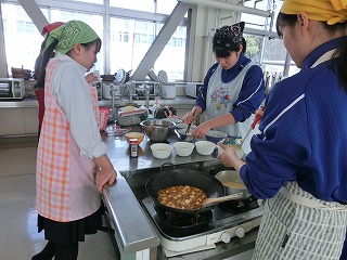 家庭基礎の調理実習でマーボードウフとスーミータンを作りました。