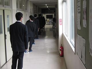 校舎内ではこのように人との間隔を2メートルとって行動しています。