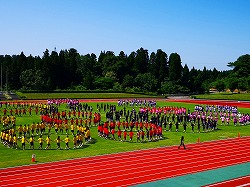 最後に全校生徒でマイムマイム。懐かしい音楽が津幡運動公園一帯に響き、フィールドには色とりどりの輪が広がった。来年はもう一曲増やしましょう。