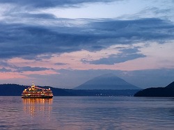 遊覧船に乗り、カモメと一緒に洞爺湖を楽しむ。中島の緑が鮮やかだった昼だけでなく、夕暮れもしんみりと良かったし、夜にはなんと花火まであがった。