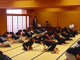 1日、学校対抗かるた大会。読み上げが始まると一斉にグッと上体を前に傾け戦闘態勢をとる。100mのスタートや相撲の立ち会い同様、一気にその場の緊張感が高まる。一つの札がおわると「ナイス!」とか、「取るよ!」といったかけ声が入る。これにはちょっとびっくりした。