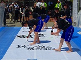 二俣町で行われた『紙すきの里まつり』。そのオープニングで書道部が書道パフォーマンスを披露した。初めて見たが楽しかった。書き終えて紙を立てたときに「オッー」という声があがる。書いただけではわからない。立てて初めてわかる面白さ。発表というのはそんな楽しさがある。