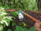 聞くと、今週初めに連れてきたとのこと。七人がそろったこびとたちは、きっと「良かった、良かった」と喜んでいるに違いない。小さな庭がパッと明るくなったのがわかる。