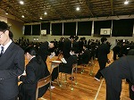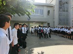 部活の前に校歌練習をはじめました。卓球部、サッカー部、バトミントン部の