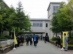 玄関でチケット切りとパンフレットの配布、花束などの受付を行いました。
