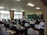 試験中の生徒の背中を見ているとその真剣さが伝わってくる。本日が最終日。終了後の生徒たちの顔は「終わったぁ」という感じである。お疲れ様。