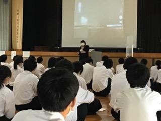 集会では学年担当の職員から、自己紹介と2年次生に向けて一人一言ずつお話しをしました。