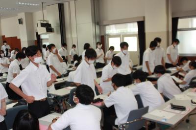 ・登校日の朝は、生徒玄関で健康観察用紙(2年次生は緑色A6用紙)の提出があります。