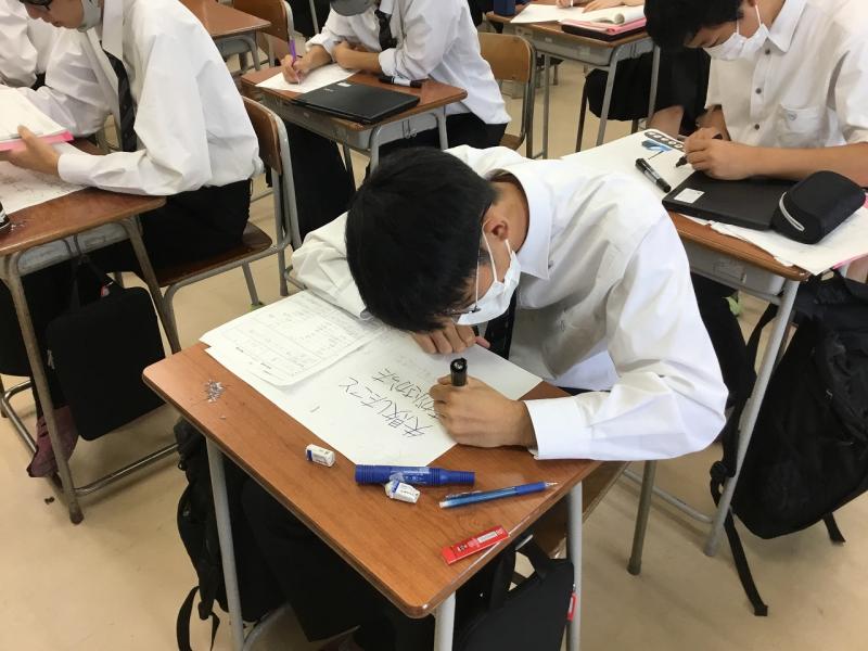 進路ワークブックを使い、具体的に進路(進学・就職)のポイントを絞りながら考察していくということを行いました。一人ひとり自分の進路に真剣向き合い、取り組んでいる姿が見られました。