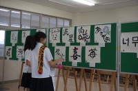 活動で書いた作品(半紙書き)の展示をはじめました。