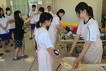 夏休みの施設実習に向けて、福祉系列の生徒は実戦的な授業を行っています。