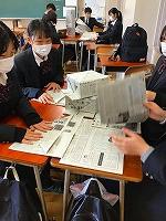 2年コミュニケーション技術の授業も今日で最後となりました。今まで学んだコミ力を駆使して、新聞紙でどれだけ高く積み上げられるかを競う「チームビルディング」をやってみました。いろいろとお互いに作戦を話し合いながら、また、周りのチームの様子を見ながら挑戦。目標は「教室の天井」。