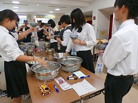 JRC部員は、福祉系列の生徒だけではありません。工業、商業、進学系列の生徒もいます。福祉系列以外の生徒は、放課後に車いす介助の練習をしました。今回助っ人として、福祉系列の生徒数名に手伝いを依頼し、1回目の交流を終えることができました。