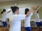 2年生は修学旅行で不在ですが、3年生が中心となり、1年生に振り付けを教えています。この日は練習2回目でした。