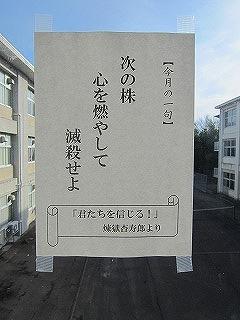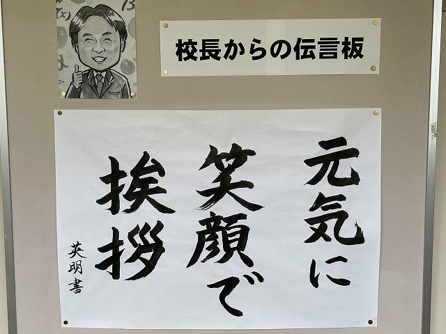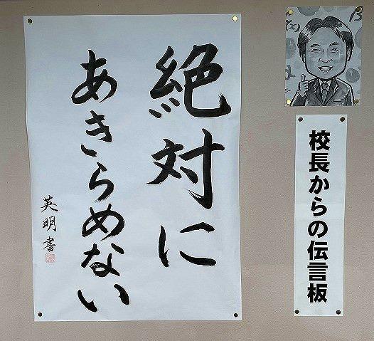 ところで、校長室前の掲示板がちょっと殺風景であったので、本日から、「校長からの伝言板」ということで、生徒の皆さんへの何らかのメッセージを発信することにしました。