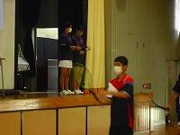 また、全校集会では後期生徒会役員が、全校生徒の前に立ち、