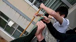 組み手争いをする向。 膝を負傷しながらも攻撃を続ける宮田。