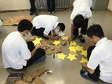 教室の後は段ボールだらけです。