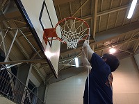 先端にひもを通し、ゴールの奥で 余計なたるみをとって整えて、