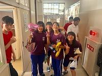 生徒会長と写真をパシャリ。当たった人たちはおめでとうございます♪