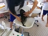 理美容店にあるような洗髪の機械を使って、髪を洗ってみました。ブローも行いました。