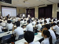 進学希望者と就職希望者に分かれて進路指導課の先生から来年の進路実現に向けて今からしなくてはならないこと、現在の3年生の状況など多くのお話をお聞きしました。