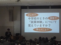 オリエンテーションではまず、中学生のときに行った就業体験について振り返り、