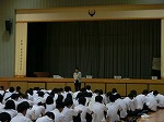 学年集会で学校生活の注意、遠足のお話、修学旅行の説明がありました。
