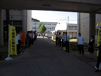 生徒会による挨拶運動が始まりました。今年度から11Hから順番に日替りで行うことにしました。あいにくの雨天でしたが、1年生のさわやかな挨拶が飛び交い、すがすがしい気持ちにさせてくれました。