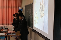 紙芝居を使って『徒然草』の物語についてグループごとに発表しました。