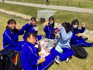 1つ目のレクが終わったらお昼ご飯。公園内に散らばって思い思いに昼食時間を過ごします。