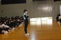 1,2年生は第一体育館で、3年生はCSホールでリモートをつないで行いました。