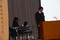 発表会運営係(3年次生で構成:司会、マイク、照明・放送、機器操作)も、この会をかげから支えてくれました。 なお、作品・レポート展示会を1月21日(月)視聴覚室でおこなっています。ぜひどうぞ。