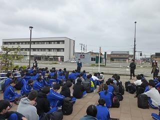 松任駅に集合、点呼を取って出発です 道中は交通ルールを守ります