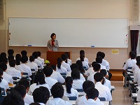 就職ガイダンスでは講師を招き、就職に向けてのマナー、心構え、あいさつ、コミュニケーション力の重要性を話してもらいました。