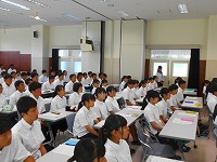 進学ガイダンスでは、語学、経営、機械工学、電子工学、看護、福祉、医療、公務員、調理など様々な志望分野に分かれ、県内外から大学、短期大学、専門学校から講師を招き、生徒の質問に答えていただく形での学校説明会を行いました。