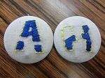 イニシャルを刺しゅうして、くるみボタンにしました。次回は自由課題です。
