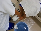 理美容店にあるような洗髪の機械を使って、髪を洗ってみました。ブローも行いました。