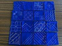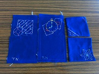 刺し子でコースターを作ってみました。表には模様、裏にはイニシャルをいれて