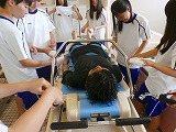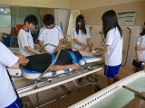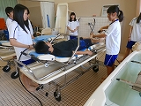 実際に生徒たちが、利用者役と介助者役に分かれて実習しました。