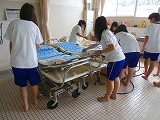 もちろん実習が終わった後も、みんなで協力して、浴槽やストレッチャーを磨きます。