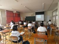 全体会では、生徒会が主体となり学校の魅力を発信し、また進路課からは卒業後の進路や自己実現のために必要な内容を中学生の皆さんにお伝えしました。