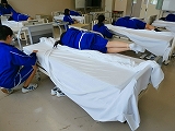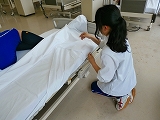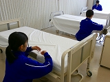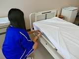 受講している生徒は、シーツにしわができないように、慎重に作り始めました。忘れている